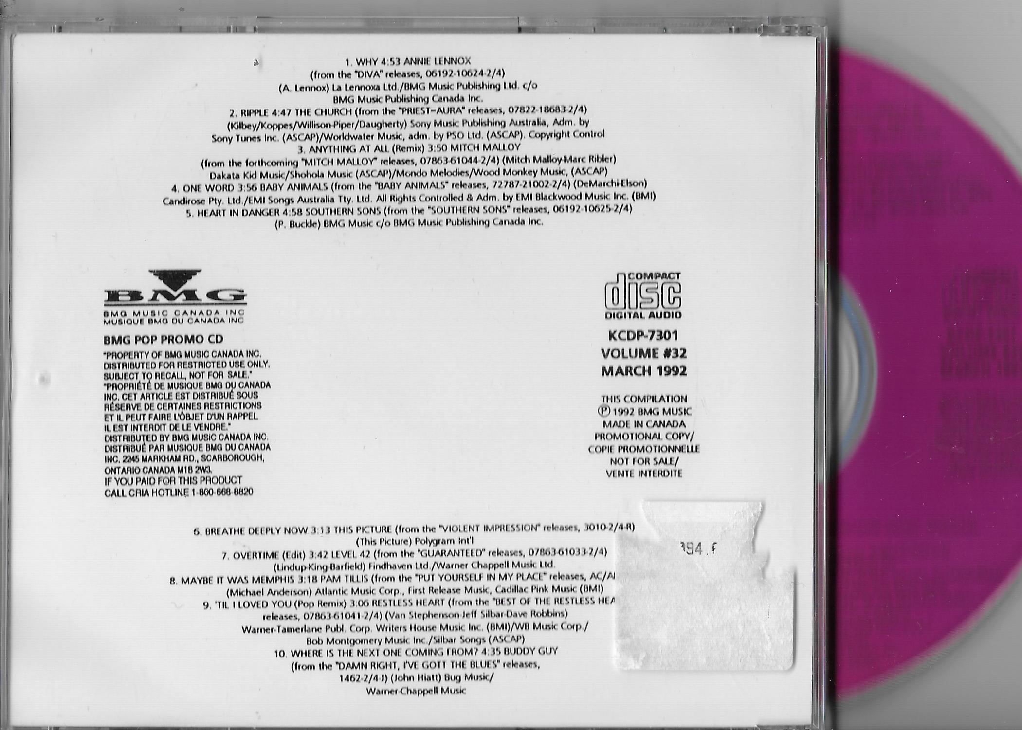 BMG Pop Promo CD Vol.32 / Annie Lennox/Baby Animals/Buddy Guy…